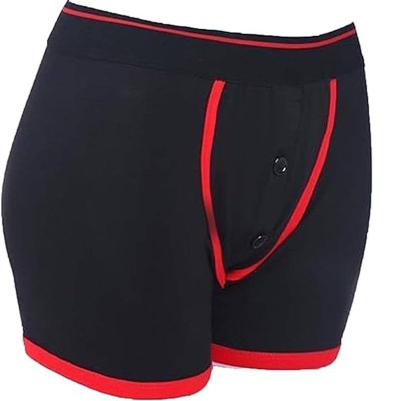 • This boxers has a discreet O-ring hidden behind the button fly front and bullet vibe pocket